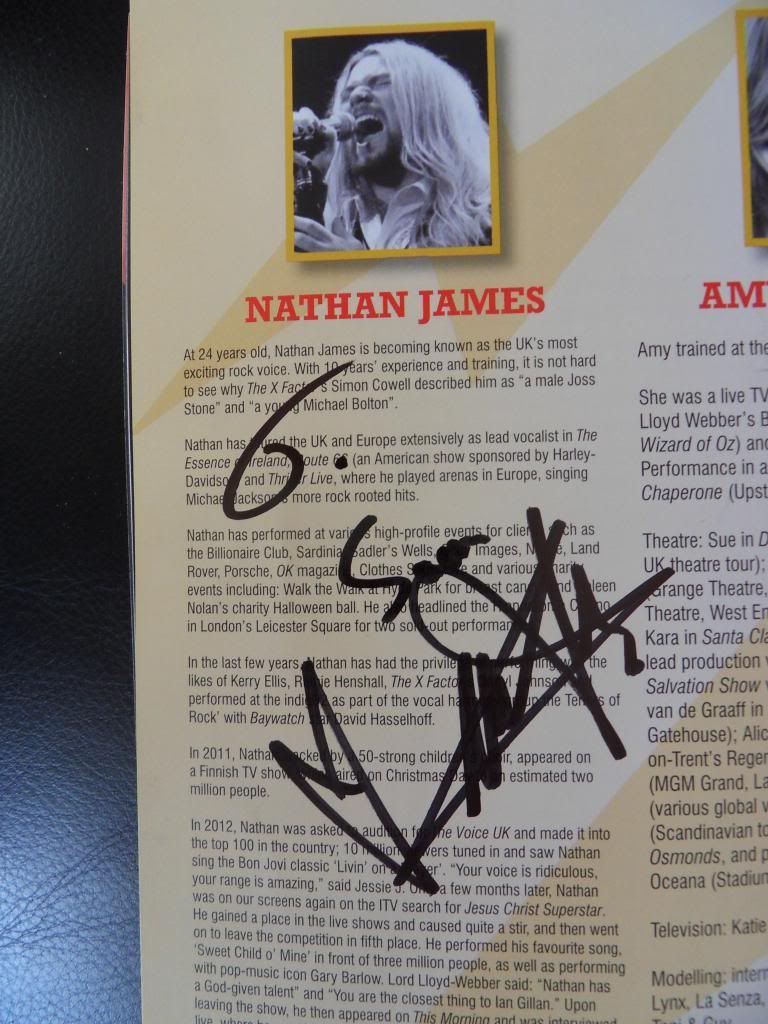 Met Nathan after seeing him perform in Bohemian Rhapsody at the Bristol Hippodrome. He was a really nice guy who signed my programme & a copy of his cd - he also posed for a photo with me.
