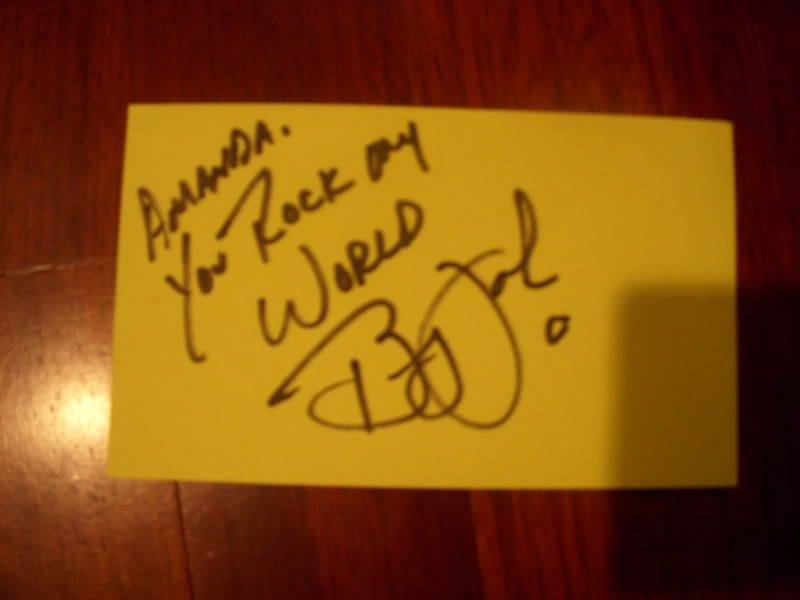 Congrats! I have to say one thing......The reason why Bret probably didn't come out was because he has low blood sugar and he gets tired after doing shows so usually 9 times out of 10 he isn't up for signing things.My friend is good friends with Bret so he told me this.I want to meet Bret myself but he said it's pretty much impossible after a show.