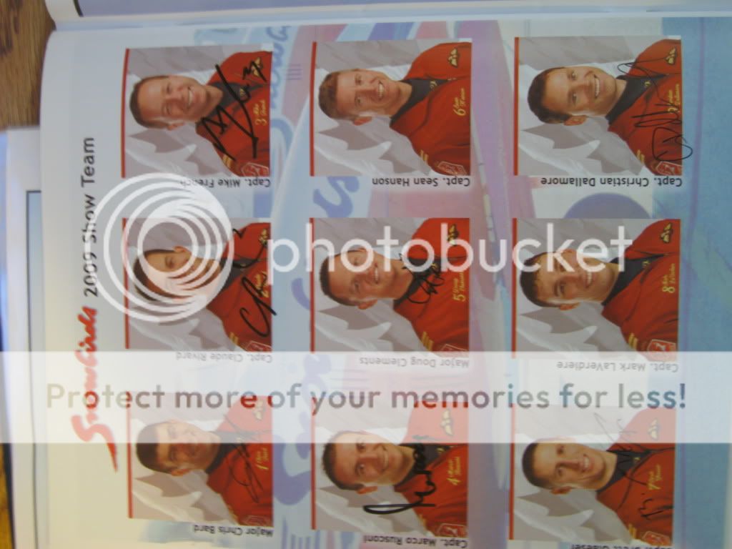 I was at an airshow at the airport in my city(St. Thomas, ON, Canada) and The Snowbirds were performing. I was able to get them to sign a poster while they were walking down the runway. I was able to get 7 of 9 Snowbirds(#6 and #8 didn't sign). It was pretty cool!