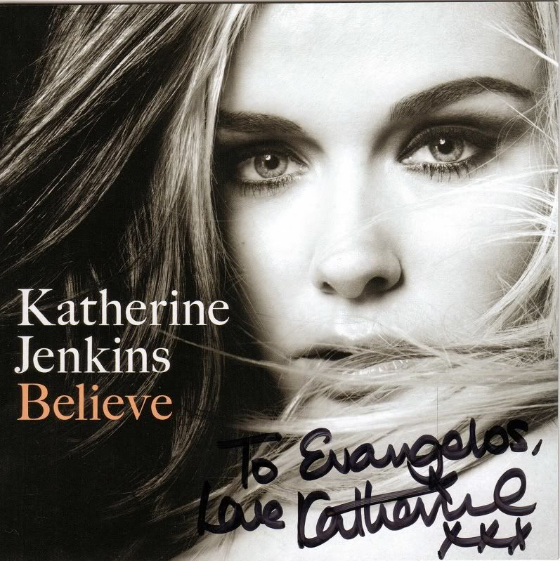 Got my CD sleeve signed and personalised by Katherine Jenkins (Welsh classical-popular crossover singer) during a signing session at HMV Westfield in London a couple of months ago.