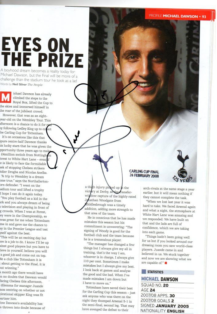 I got a signed crest sheet by Palacios, Bassong, Livermore, Crouch, King, Kaboul, Bentley, Dawson and Gudjohnsen