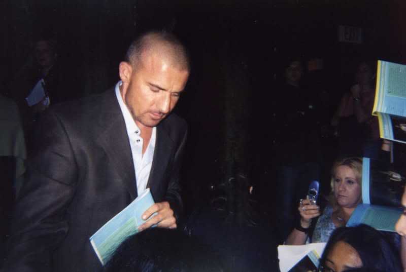 On Friday I went to a Q&A with the cast of Prison Break. They had almost the whole cast there except Wentworth. I was a little annoyed about that but it was ok because the whole cast was great. I got autographs from Dominic Purcell, Sarah Wayne Callies, Amaury Nolasco, Robert Knepper, Wade Williams, Rockmond Dunbar.