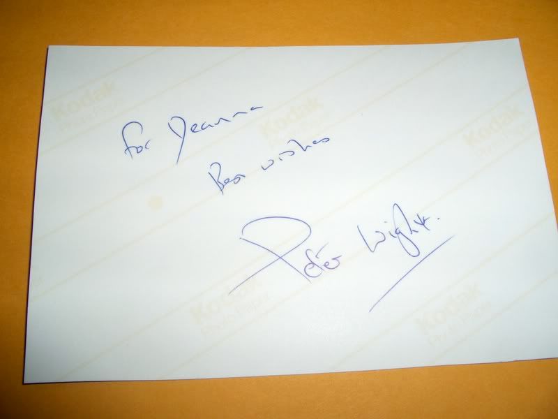 Received: 1/06/09 my index card signed, back of photo signed, and a lovely note from Peter {thumb2}