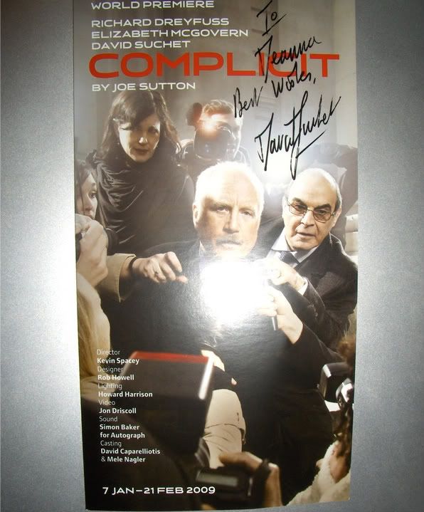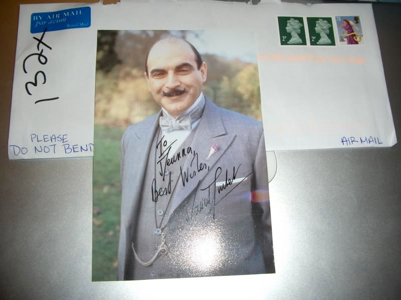 I actually was not really expecting this back. I love David especially as Hercule Poirot ;-) I've read a lot of Agatha Christie novels and I've seen just about every single film/episode of the Poirot series :D I had written to him before via his agency and received an autopen photo which was a disappointment. Anyways, I had seen a few successes on here from his play in London so I thought I would give it a try even though I don't have UK stamps and have nowhere to buy them or IRC's. David was kind enough to pay for the postage for me and add a surprise :mrgreen:
