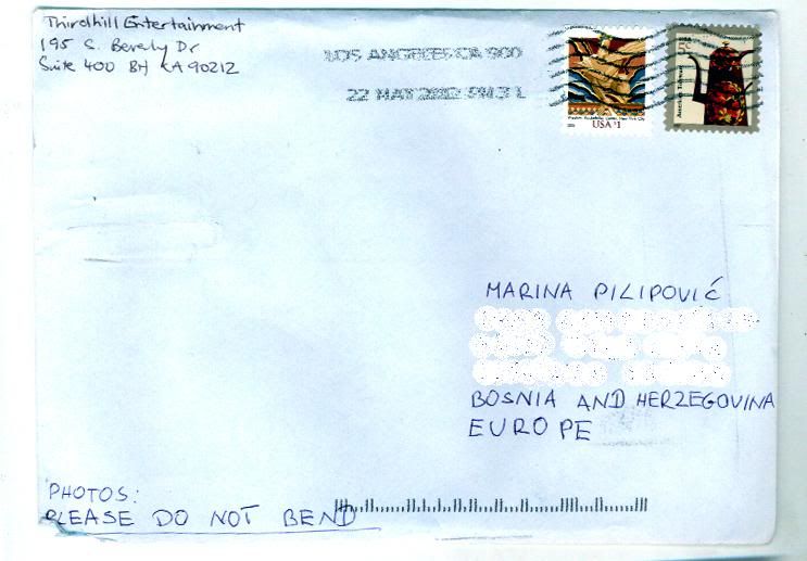 She writes "Marina, veliki pozdrav iz LA", on english "Marina, many regards from LA"