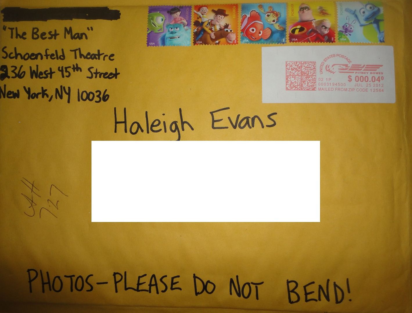 Sent: June 26, 2012- LOR, SASE, 1 8x10, 2 5x7s