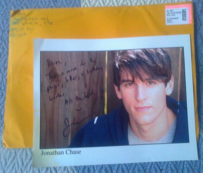 I sent mail with IRC to actor Jonathan Chase in the end of October and got this lovely picture and message on the mail today. I'm very happy about this success.