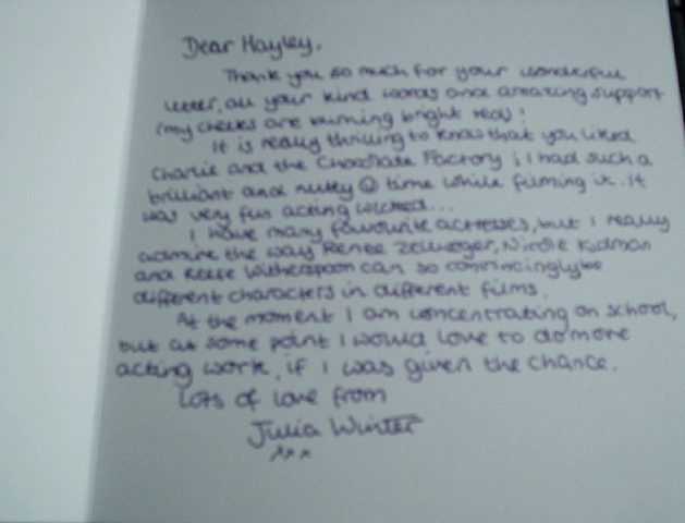 Ok, here they are:x hayley x wrote:Well I have never sent a proper questionnaire, but I always ask 3 or 4 questions in my letter just in case the celebrity has time to answer themA few times I have received a letter back from the celebrity answering the questions I asked, plus more! I'll take some pictures of these a bit later on and post them in here.