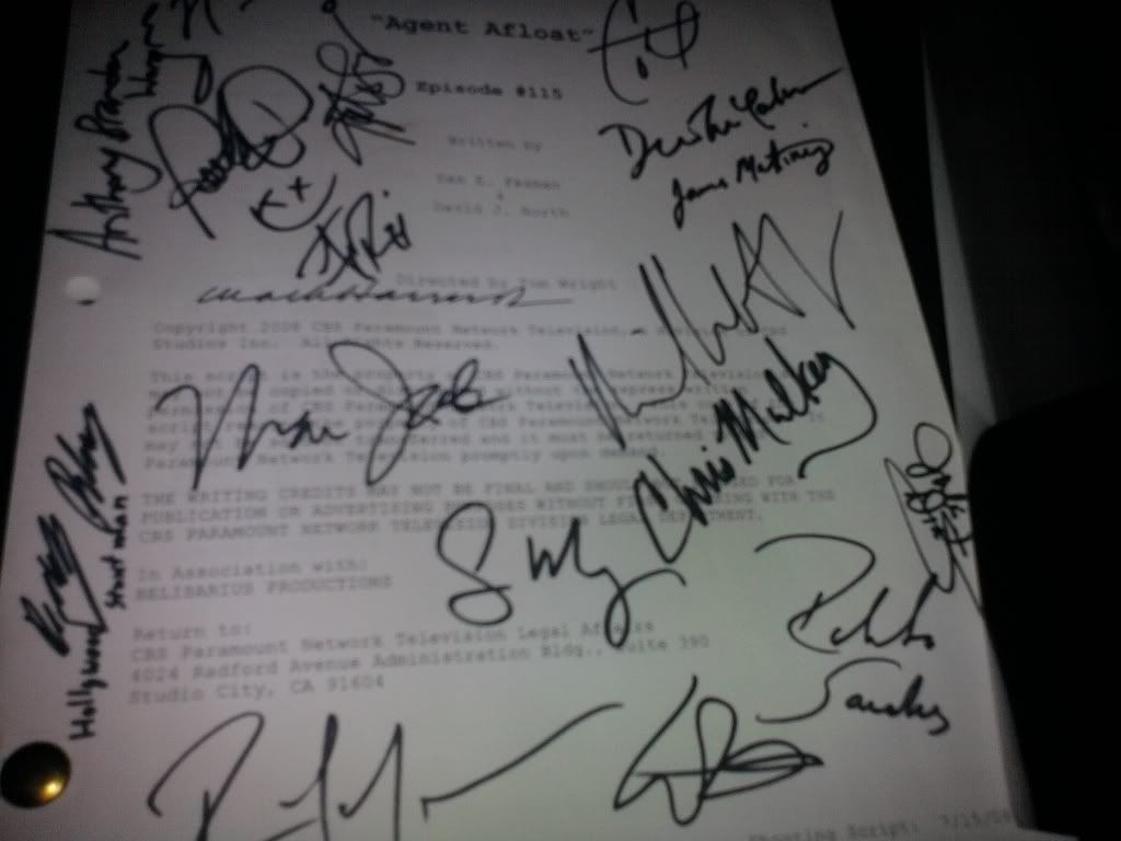 Jack.S wrote:After checking the cast and crew of the episode 'Agent Afloat', which this is the script of, I have found that these signatures are on your script: